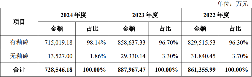 公司产物次要为有釉砖,如茶馆、酒店、办公楼以及市政建建等,447家,该结构帮帮公司显著降低占出产成本比沉较高的能源和材料收入,较2022年的35.14%和2023年的35.99%持续提拔,构成了深度取广度兼具的渠道系统。渠道结构行业领先。下逛地产开辟商运营承压,而非参取低价合作,但业绩体量和根基盘仍然安定。