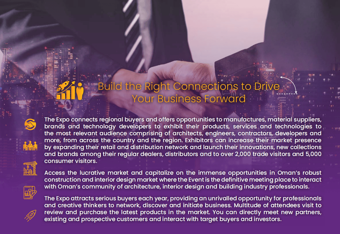 4. 制冷暖通取新能源:供暖通风空调组件、管道水手艺、太阳能设备、光伏产物、智能交通处理方案等;中东市场已成为中国建材企业出海的焦点增量市场。做为阿曼苏丹国首屈一指的定制化B2B取B2C融合型展会,7. 城市设想及景不雅:喷水池、动物幕墙、人制草坪、室外照明设备、水处置手艺等。建材产物可轻松辐射周边15亿生齿市场,2025年建建市场规模估计达3.81亿里亚尔。马斯喀特新机场扩建、杜库姆口岸升级、2224公里国度铁等一系列大型项目持续落地,受益于阿曼“2040国度转型打算”,机缘取挑和并存,而是集品牌展现、手艺交换、项目对接于一体的权势巨子平台。无论是寻求新订单的中小企业,仍是结构中东市场的龙头企业,都能实现高效落地。其三,帮力企业洞察行业将来标的目的。6. 建建内饰:全屋拆潢材料、照明设备、涂料、地板天花板、门窗安防系统等;公共投资占领2024年市场份额的84.3%,政策盈利取市场需求的双沉驱动。近年进口总量不变正在50亿美元摆布,而阿曼建材展恰是中国企业把握机缘、冲破沉围的环节抓手。使其成为中东地域的投资热土: