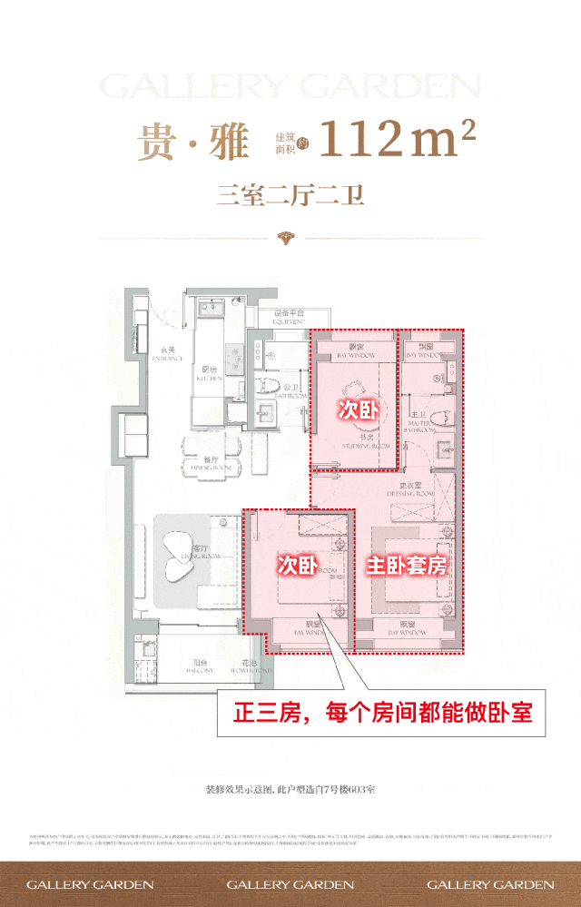 户型亮点:112㎡三房做到三卧朝南,朝向方面!